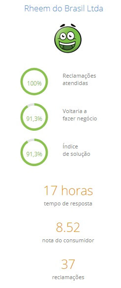 A Rheem tem o orgulho de apresentar seu índice do Reclame Aqui !